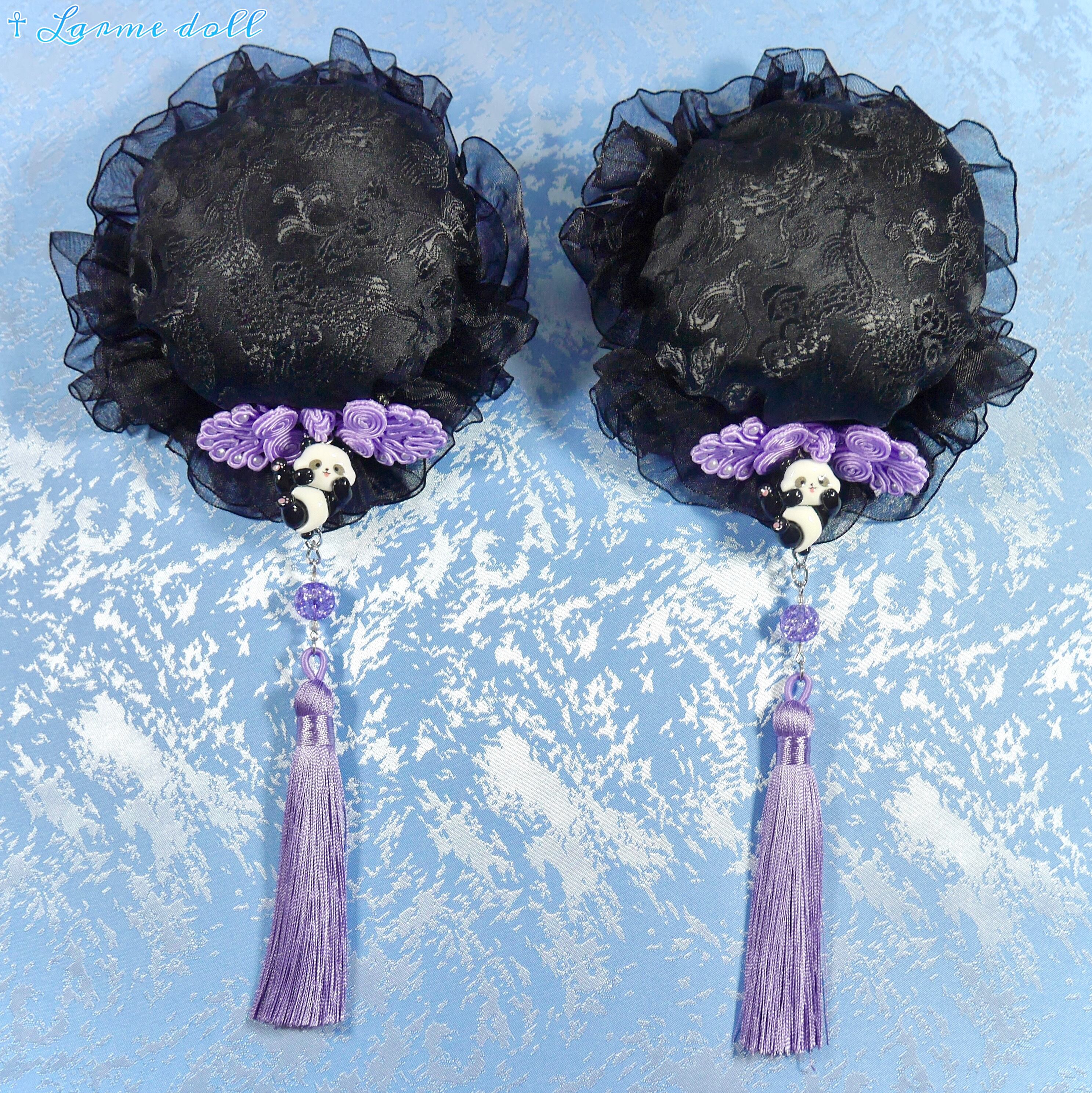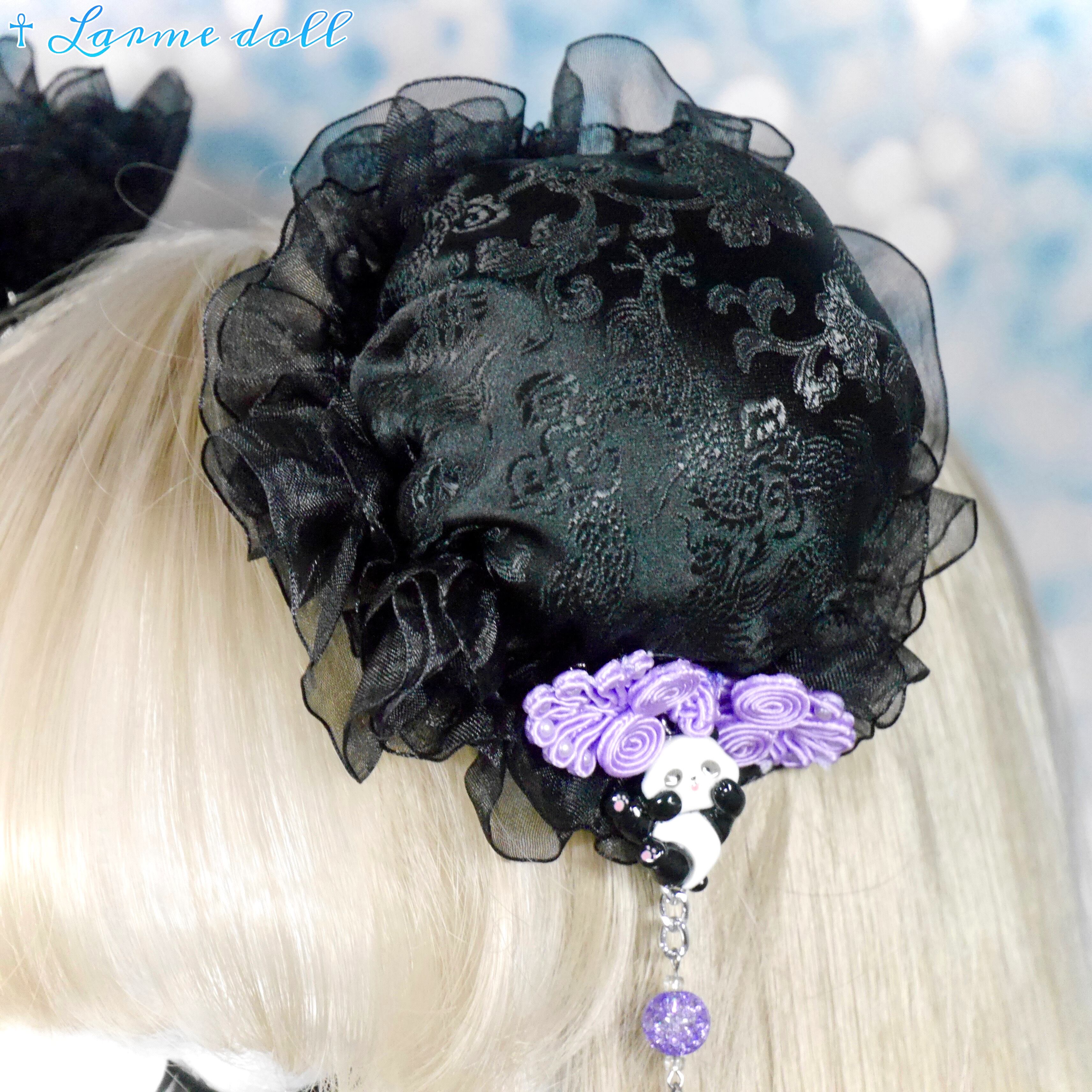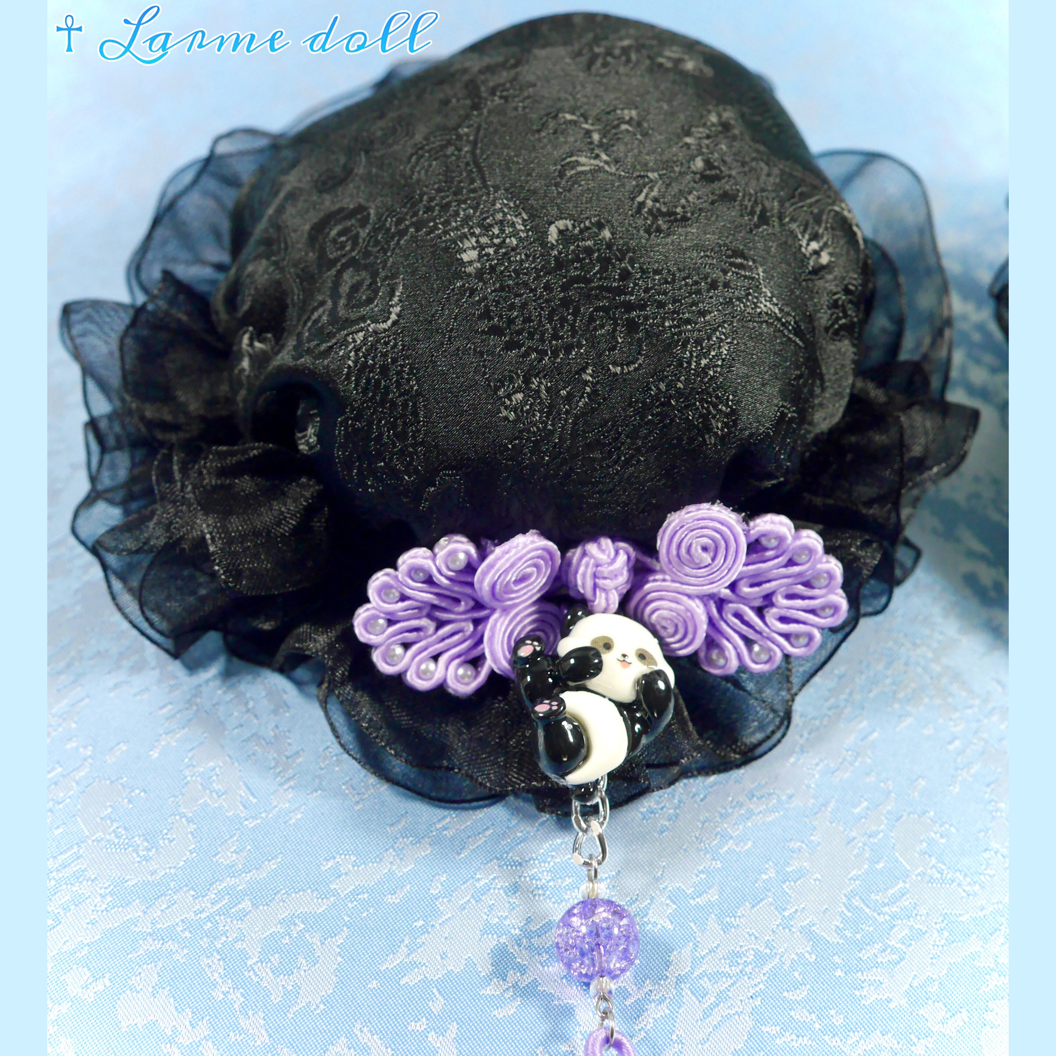 【受注生産】《☥》パンダチャイナお団子カバー(チャイナ生地タイプ)(レース黒)本体カバーカラー▷黒