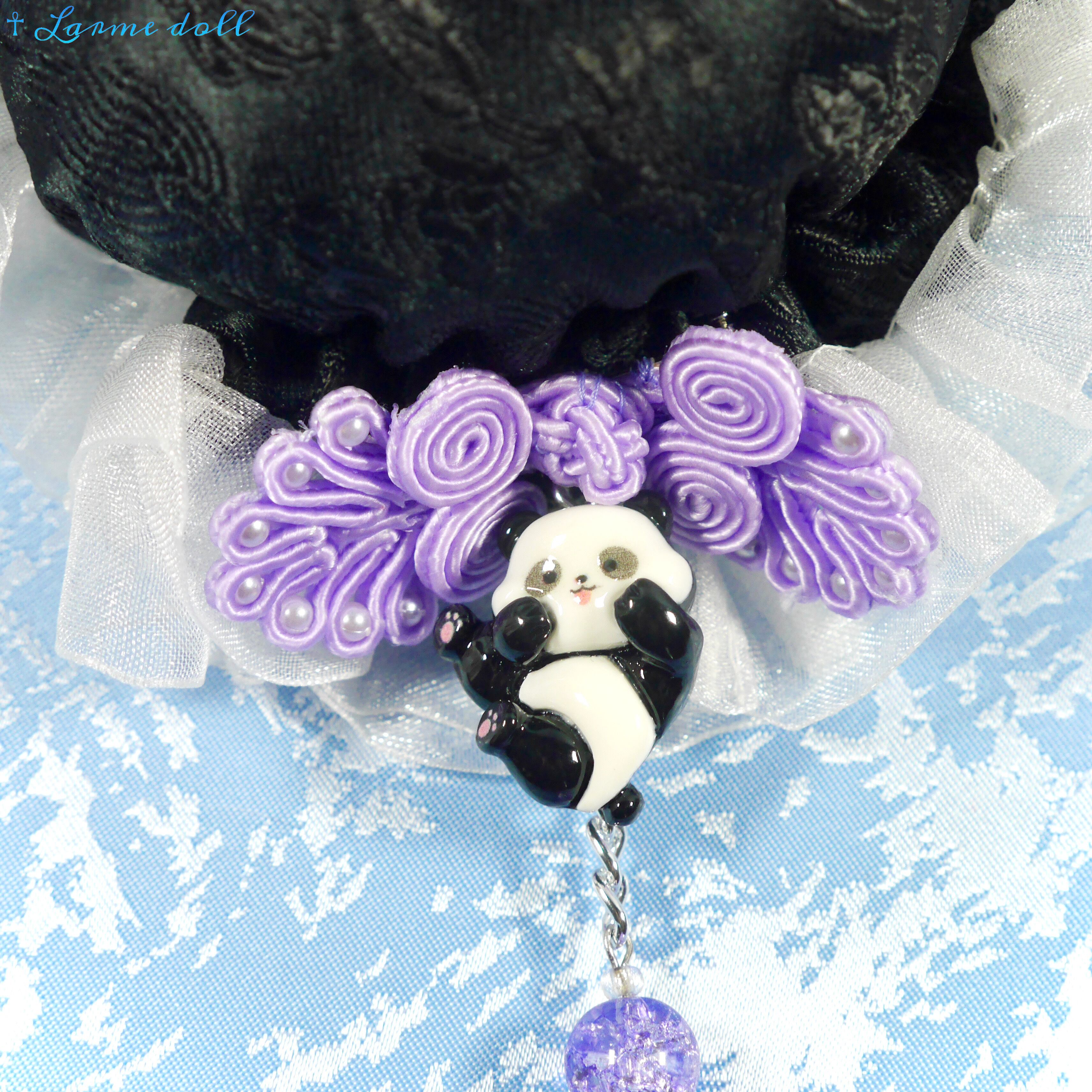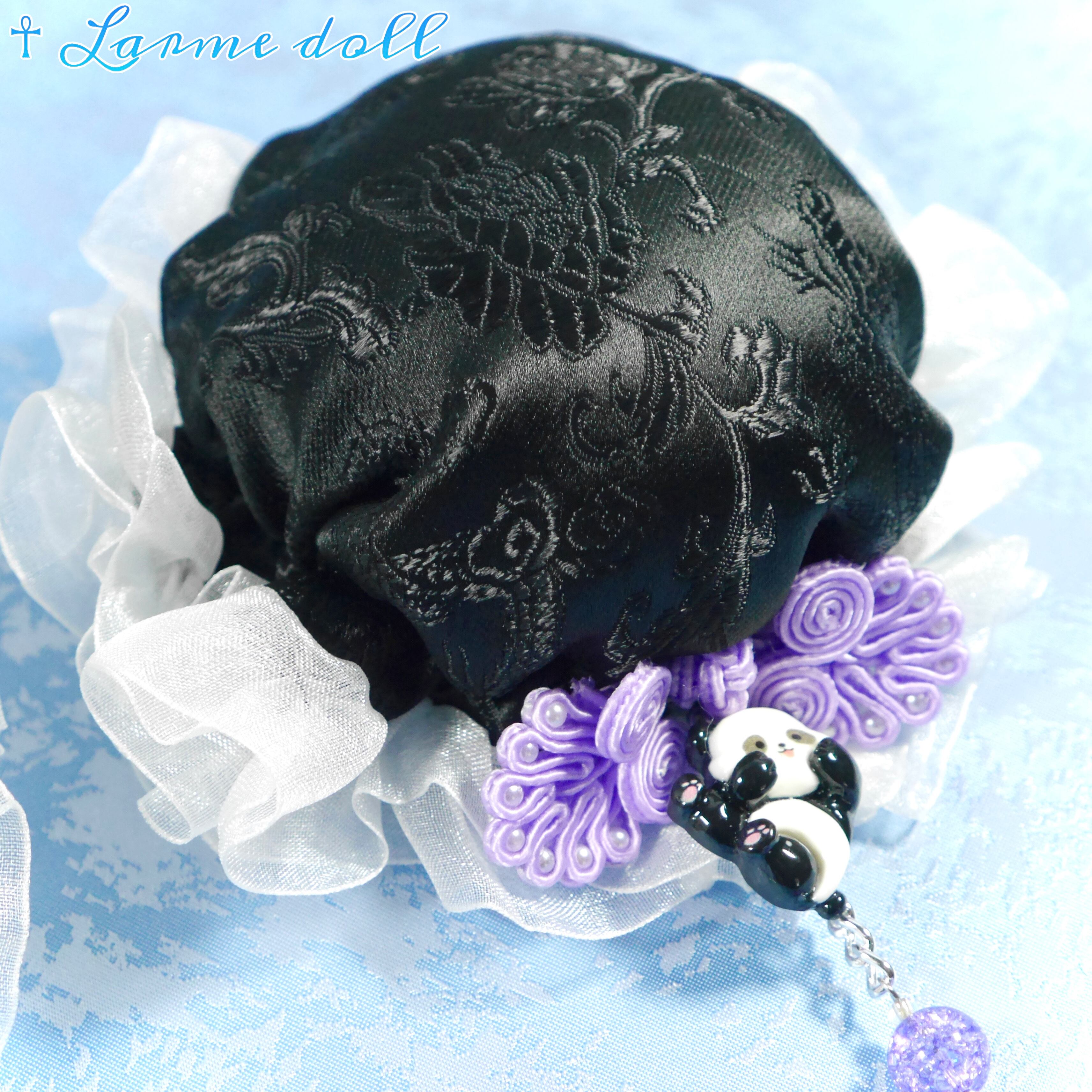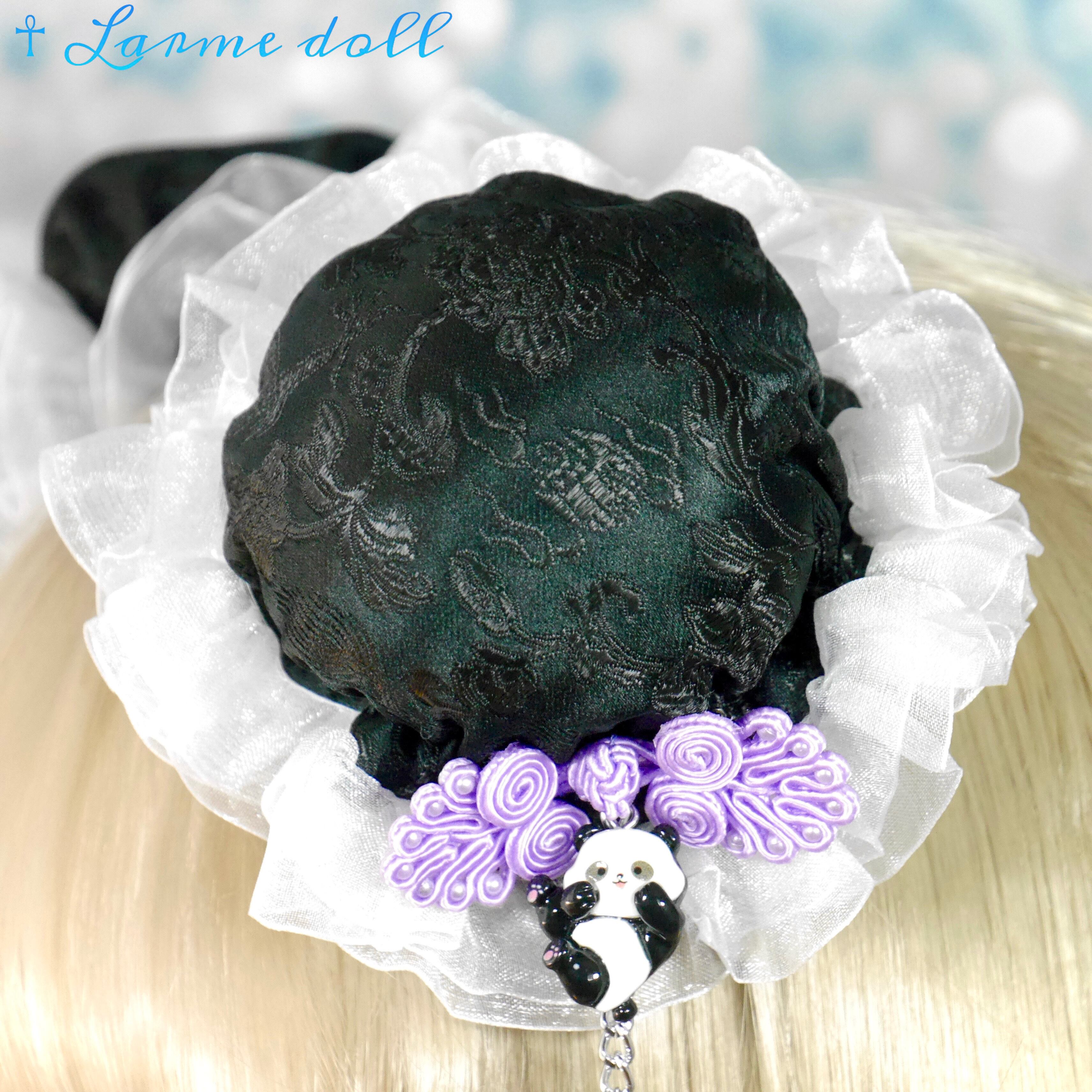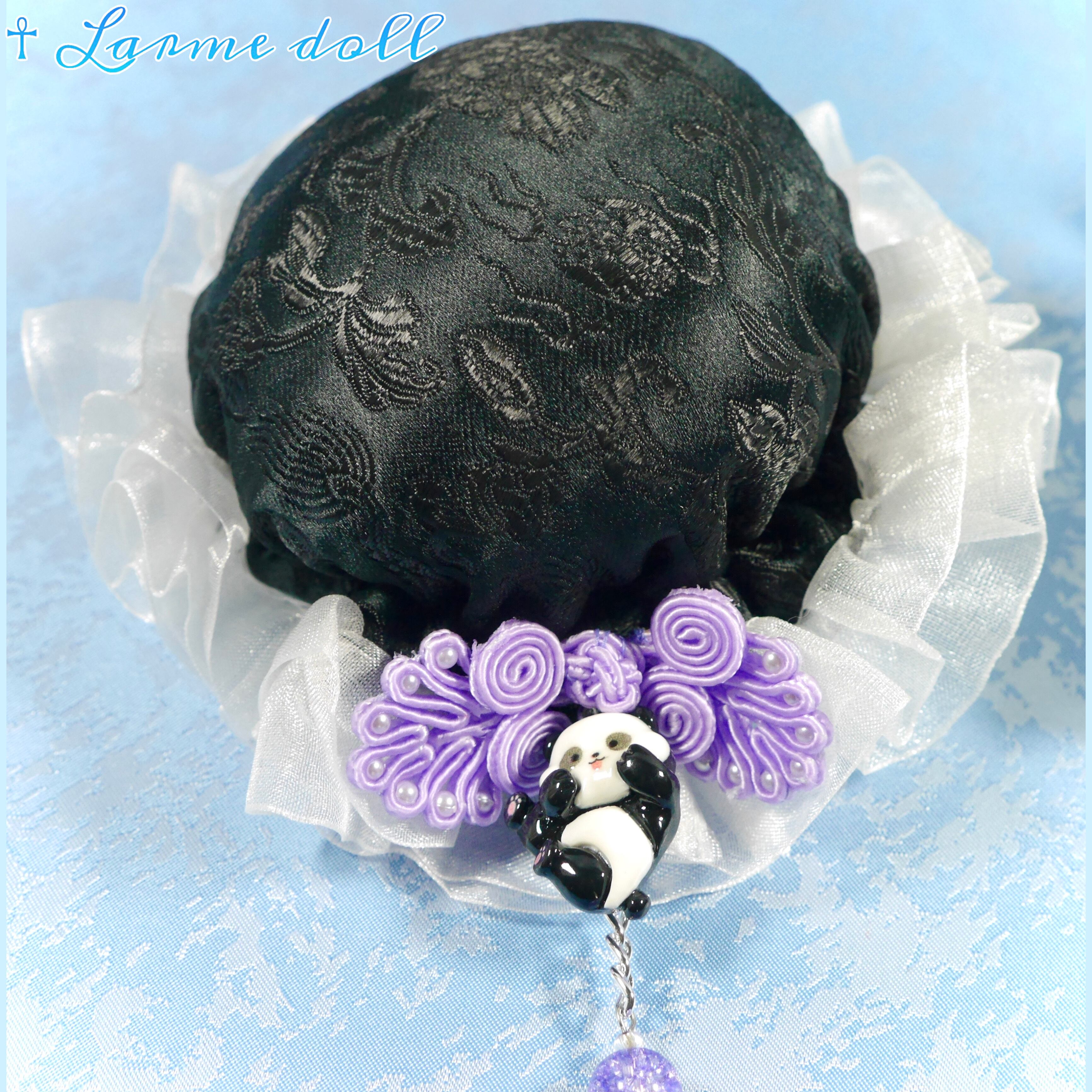【受注生産】《☥》パンダチャイナお団子カバー(チャイナ生地タイプ)(レース白)本体カバーカラー▷黒
