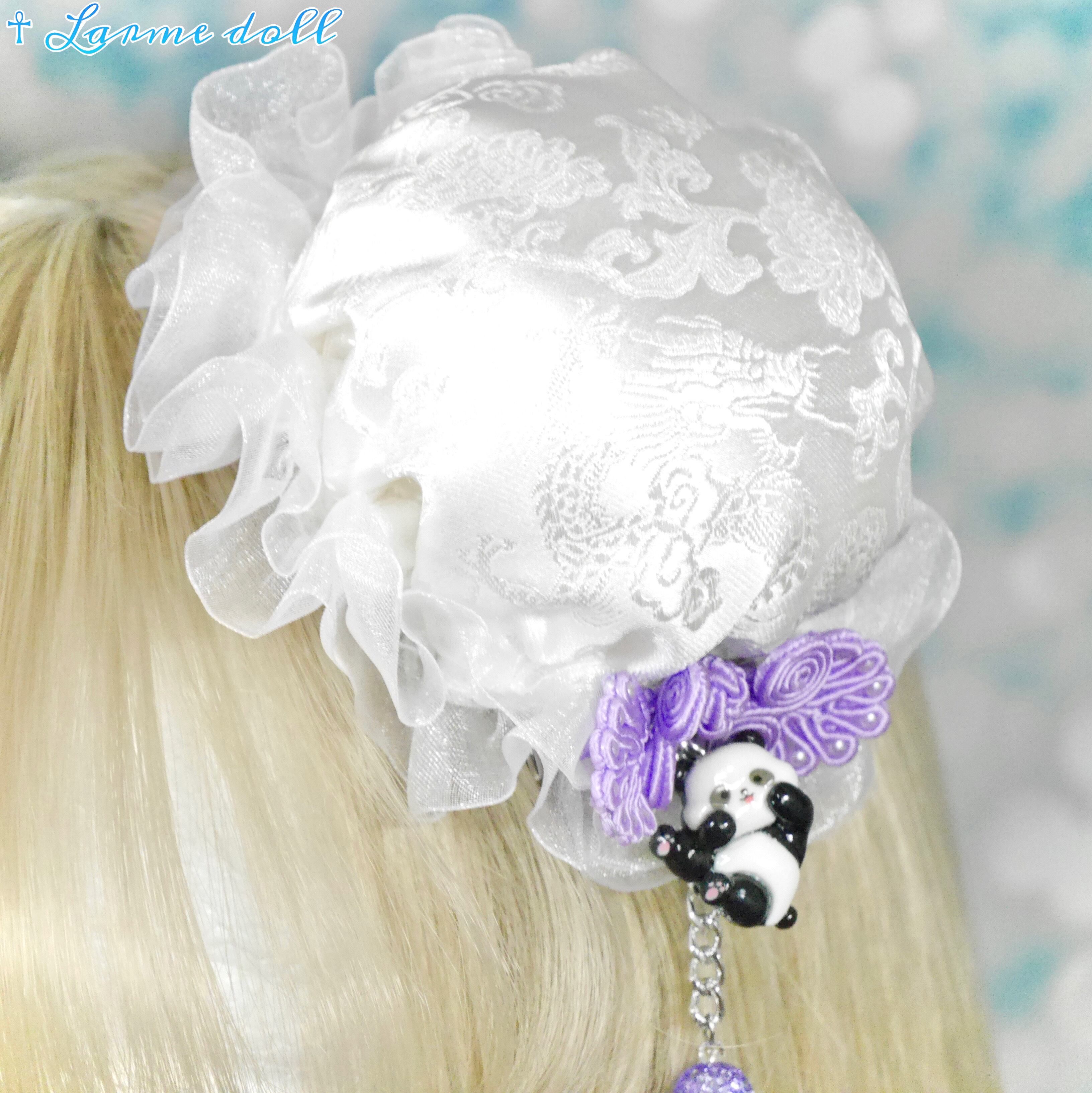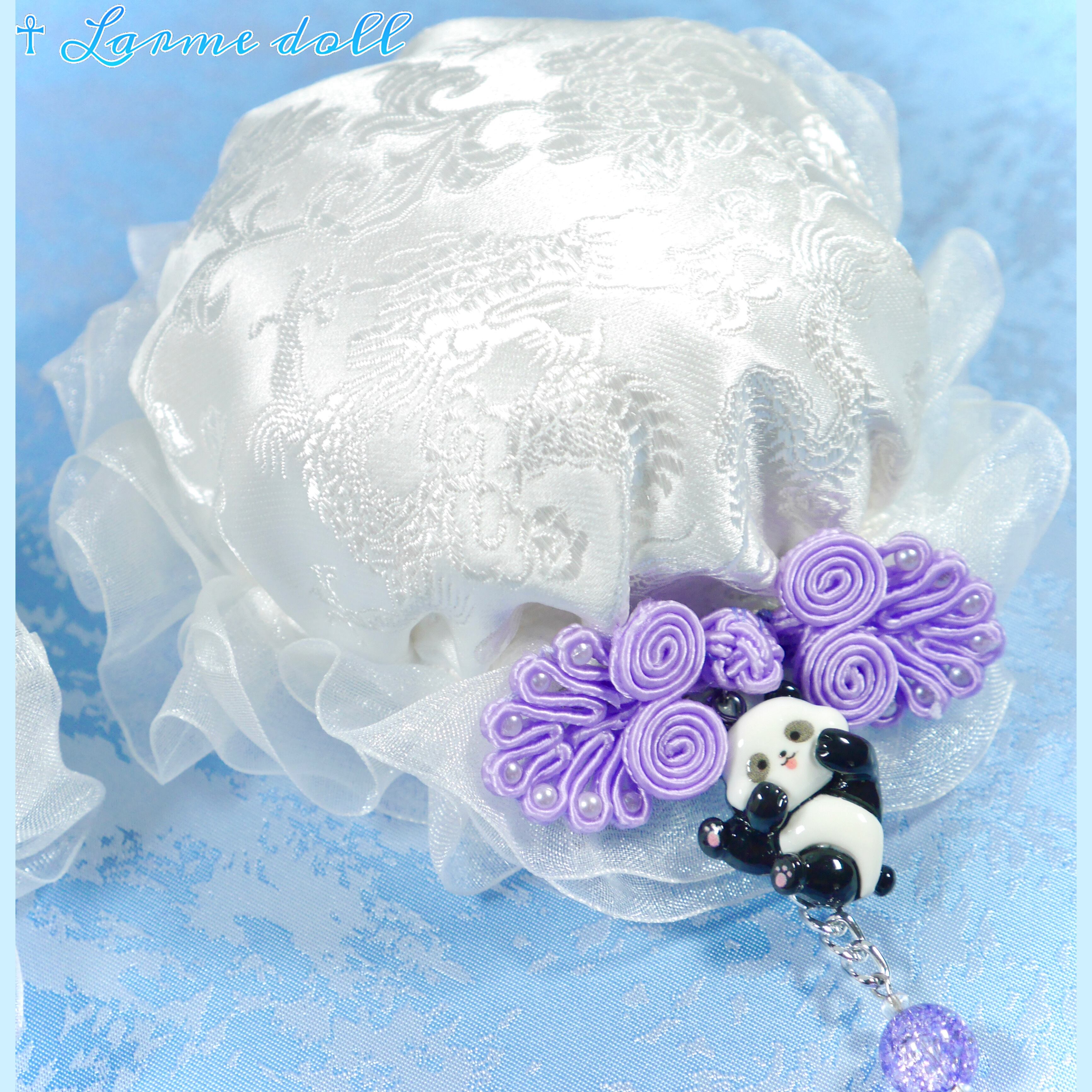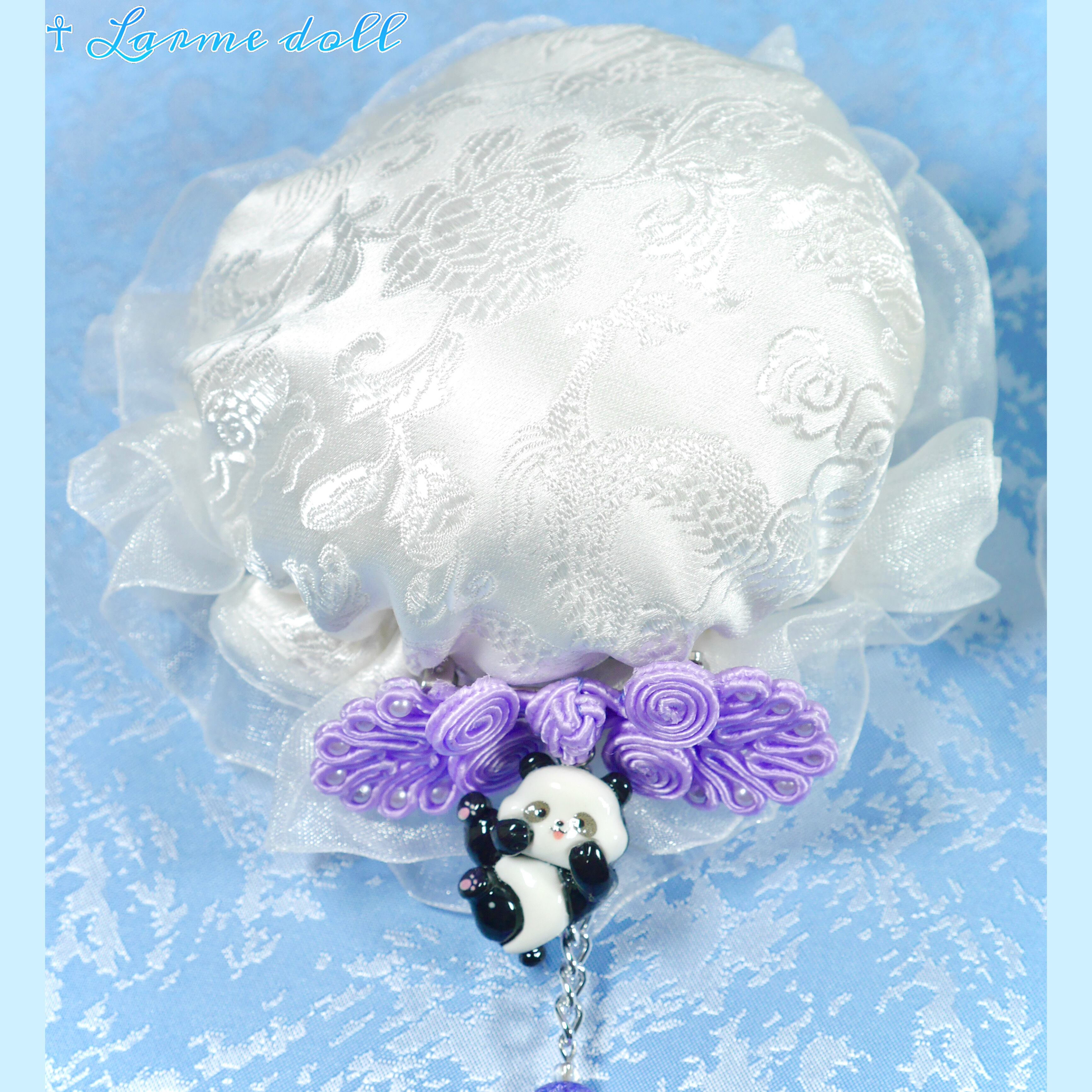 【受注生産】《☥》パンダチャイナお団子カバー(チャイナ生地タイプ)(レース白)本体カバーカラー▷白