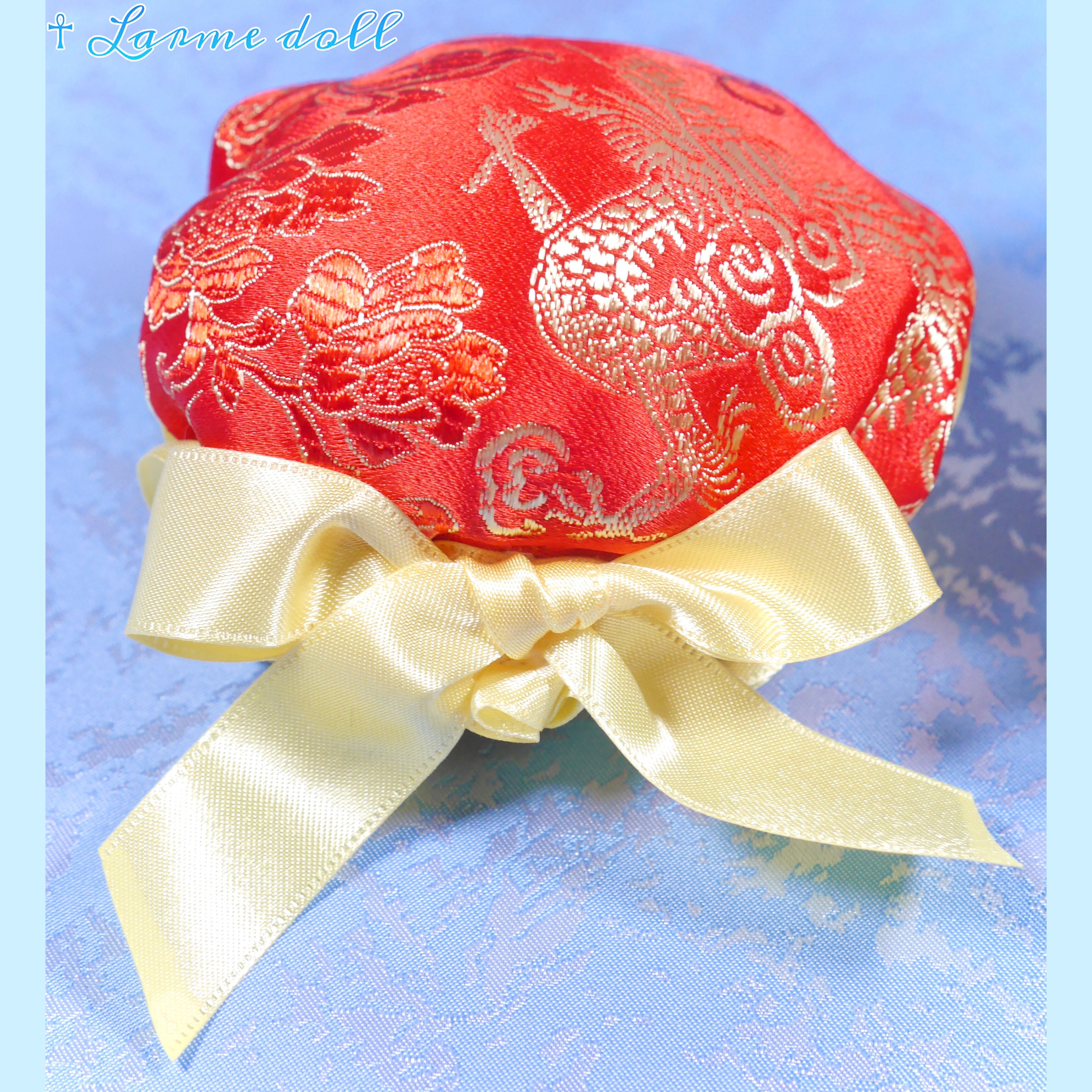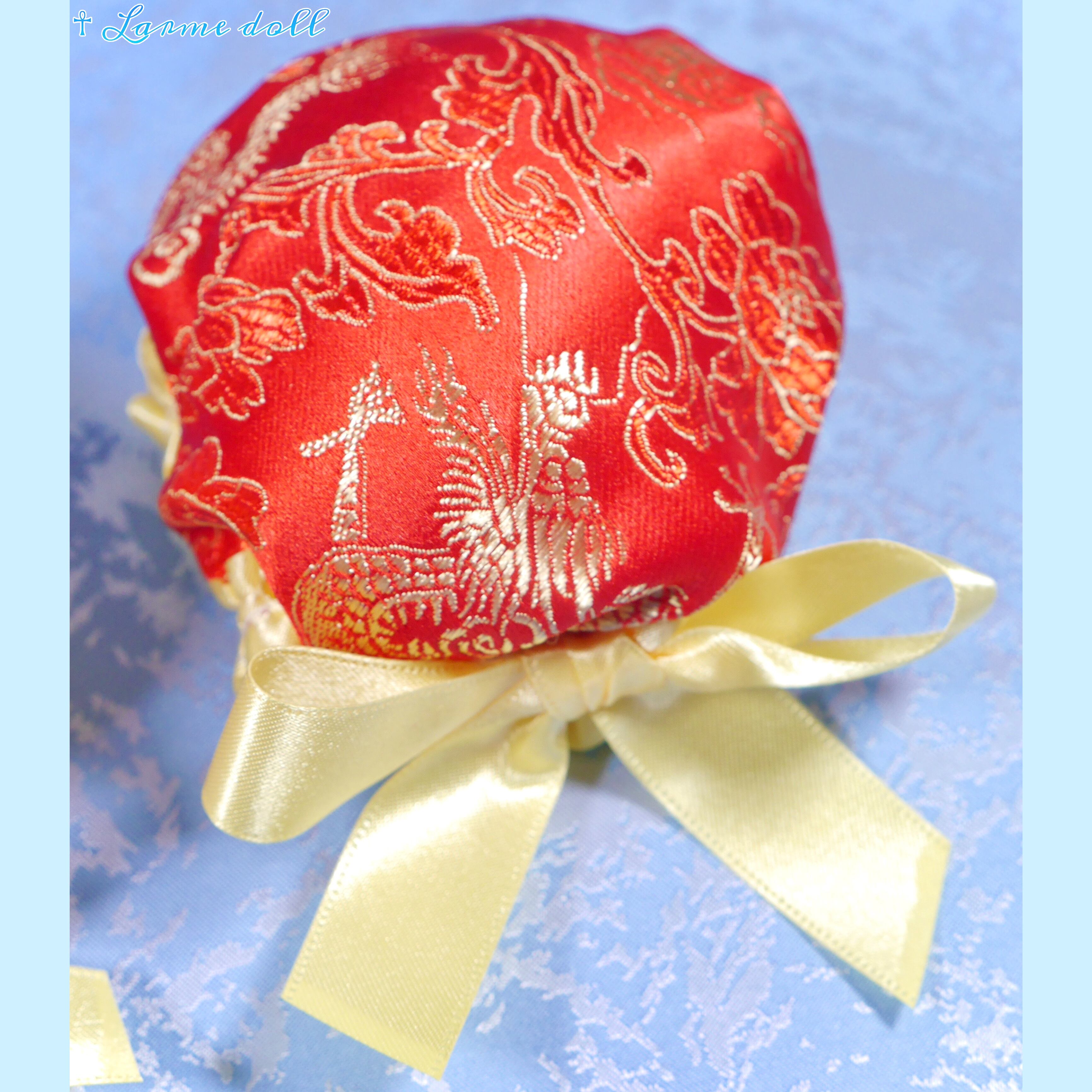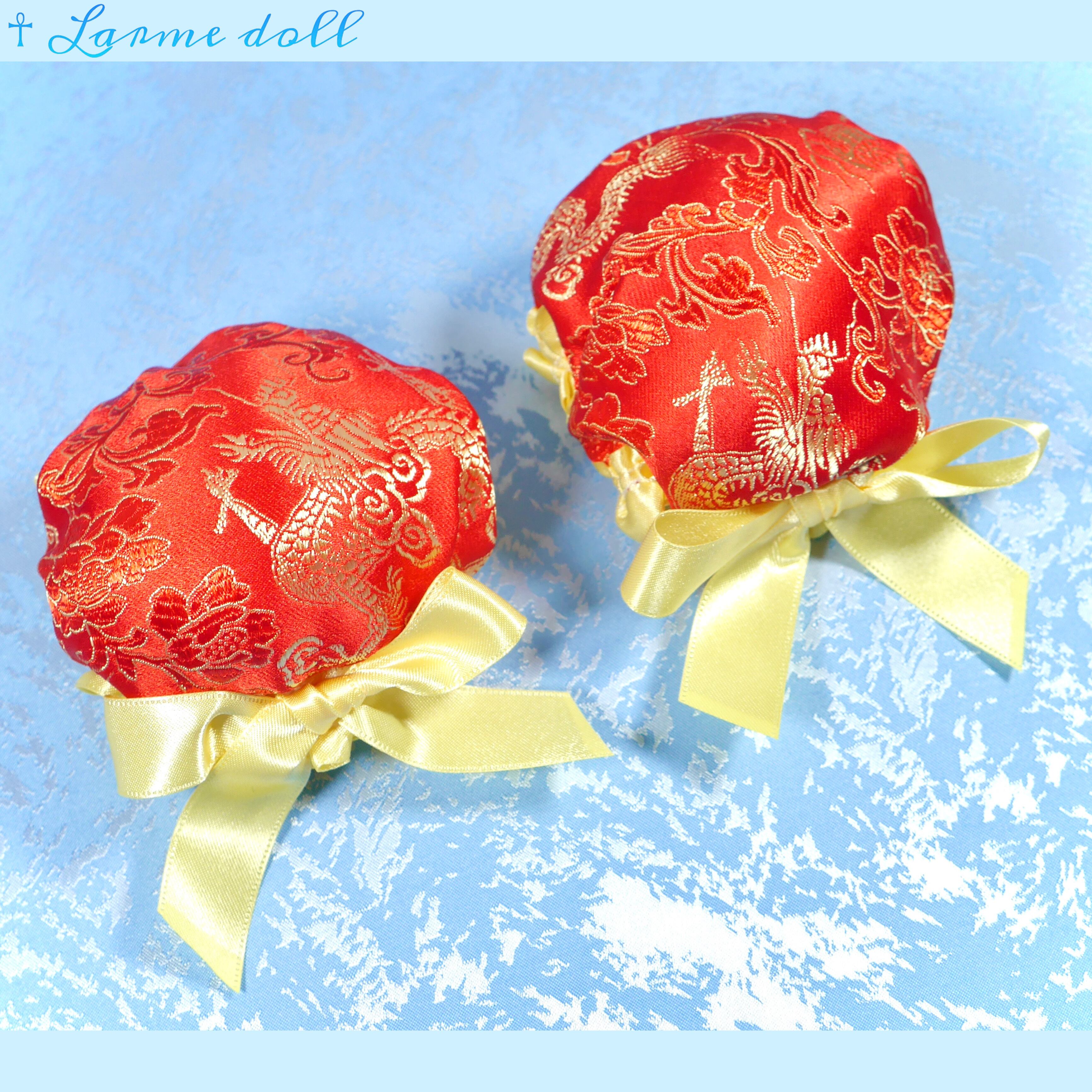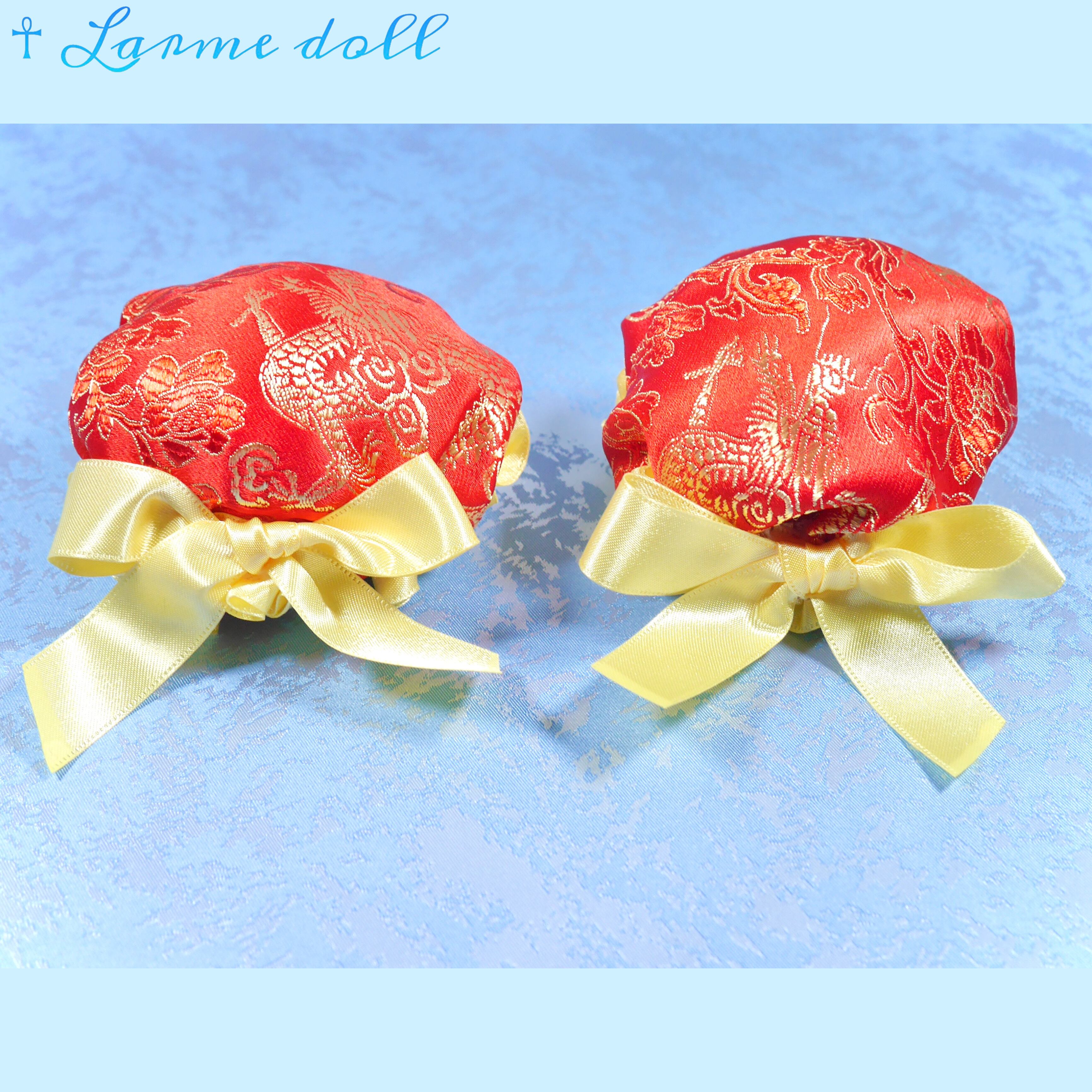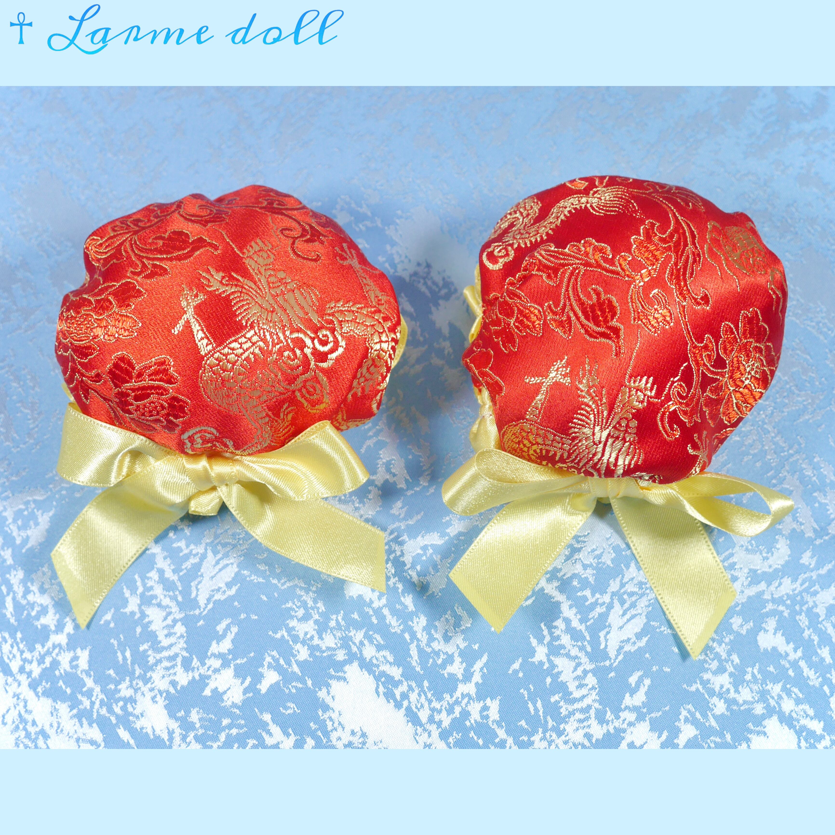 赤色のチャイナ生地のお団子カバーです。